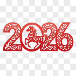 红色剪纸风格新年2026年马年艺术字免抠元素