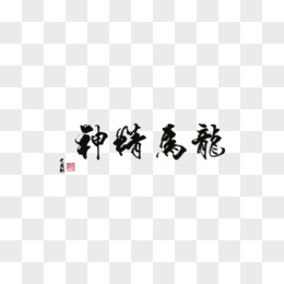 创意毛笔风龙马精神艺术字金色立体设计