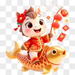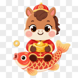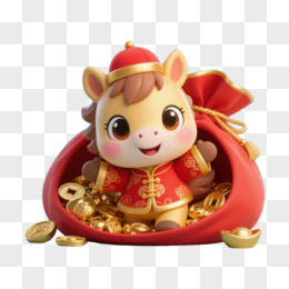Q版可爱3D马年卡通马形象免扣元素之福袋走出可爱马