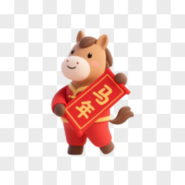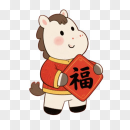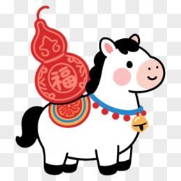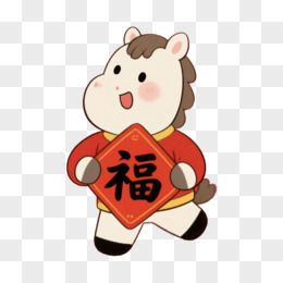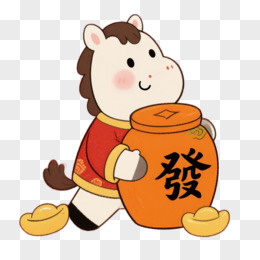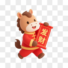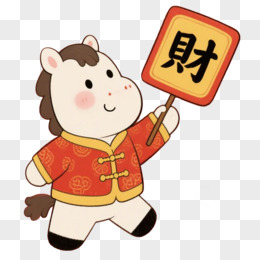 卡通一个小马拿着发财对联免抠元素