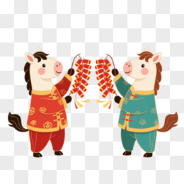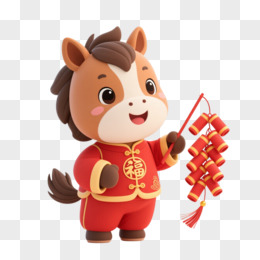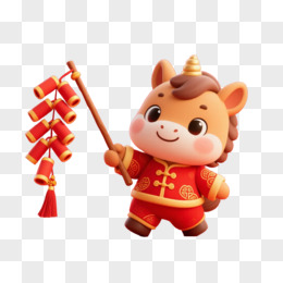 卡通一个小马拿着鞭炮免抠元素