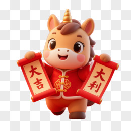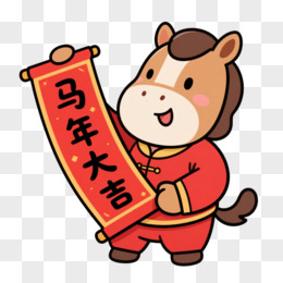 卡通一个小马拿着马年大吉对联免抠元素