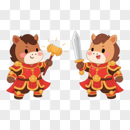 卡通一对门神小马免抠元素