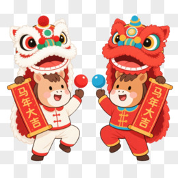 j卡通头戴舞狮帽的小马举着2026免抠元素