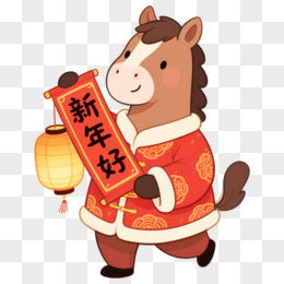 卡通一个小马拿着马年对联免抠元素