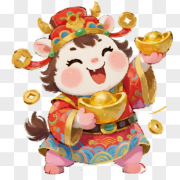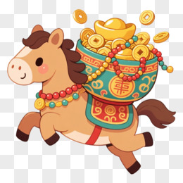 卡通一个小马抱着金元宝免抠元素