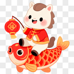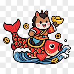 卡通一个小马抱着金鲤鱼免抠元素