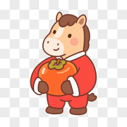 卡通一个小马抱着大柿子免抠元素
