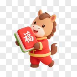 卡通一个小马拿着福字麻将免抠元素