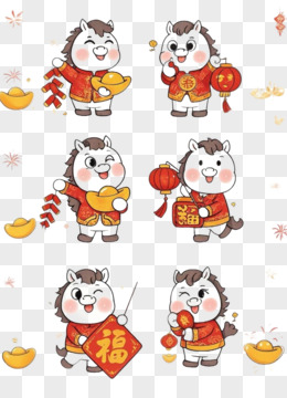 卡通手绘中国马年IP形象马形象免抠元素