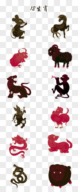一组水墨风手绘十二生肖合集系列二免抠素材