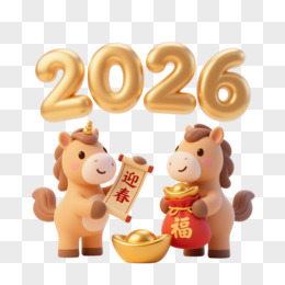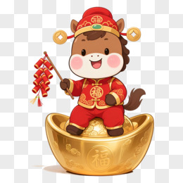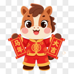 马年春节可爱小马拟人形象卡通马IP免扣元素麻将马