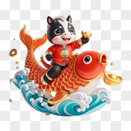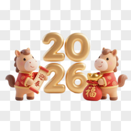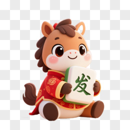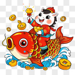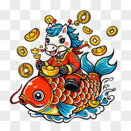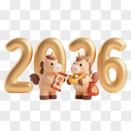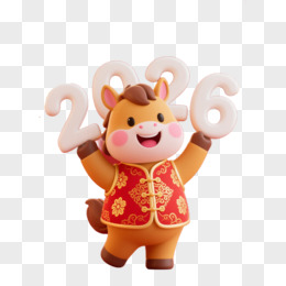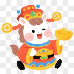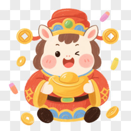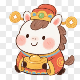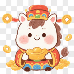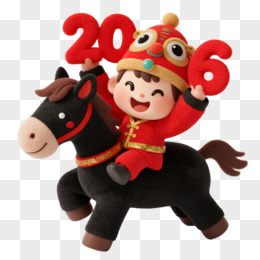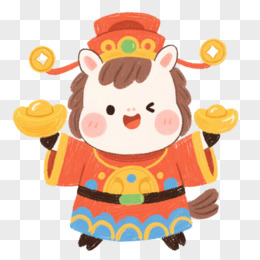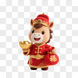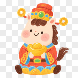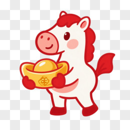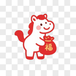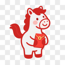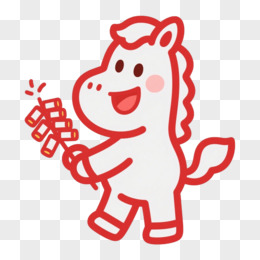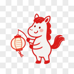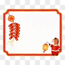 红色马年小马拿灯笼鞭炮边框免抠元素