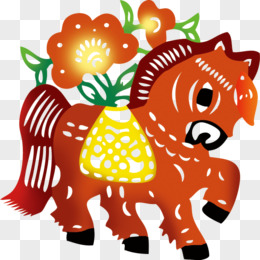 中国风生肖剪纸马