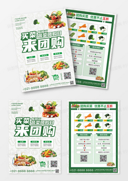 绿色简约大气风买菜来团购社区团购宣传单设计