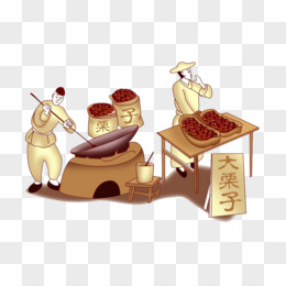 手绘卡通街边小吃老师傅手摇爆米花素材