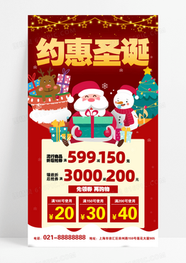 红色渐变圣诞节节日大促盛大快乐圣诞礼物买海报模版
