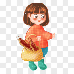 手绘卡通插画风女孩抢到回家的票开心奔跑免抠元素