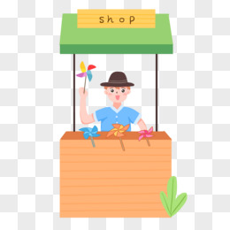 手绘创意插画之西瓜摊位西瓜买场景元素