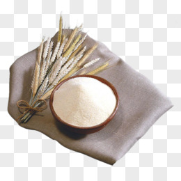 放在麻布上的一把麦穗和一盆面粉