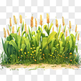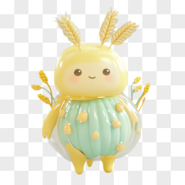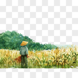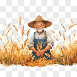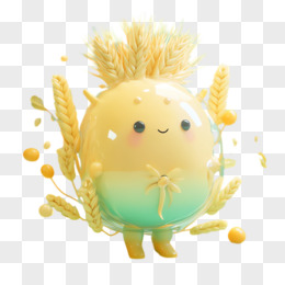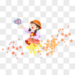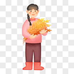卡通手绘女孩坐在麦穗堆里观察蜻蜓免抠元素