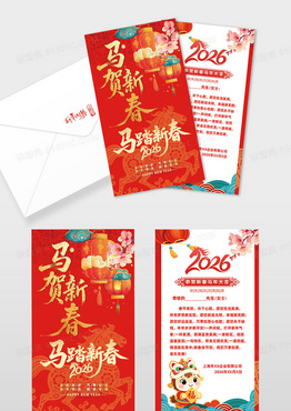 红色喜庆马年成语灯笼剪影2026马贺新春新年贺卡