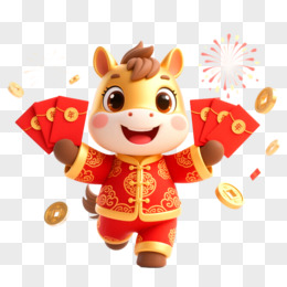 3D立体金色马年形象IP免抠元素