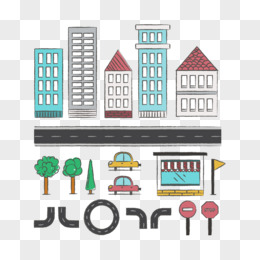 手绘矢量卡通城市街道素材