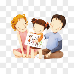 手绘卡通爸爸妈妈给小孩子喂药素材