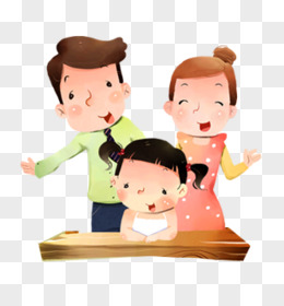 卡通妈妈擦玻璃小女孩拖地爸爸擦桌子免抠元素