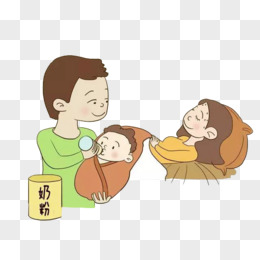 卡通妈妈擦桌子小男孩收玩具爸爸清洁地面免抠元素