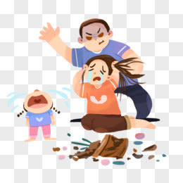 手绘卡通家暴爸爸打妈妈孩子哭免抠素材