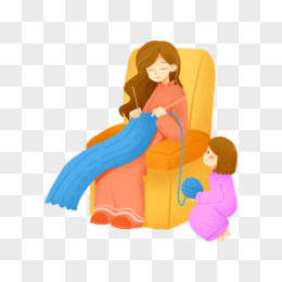 手绘免抠妈妈和孩子织毛衣免抠元素