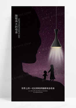 黑色星空简约风母亲节海报母亲节微信手机海报