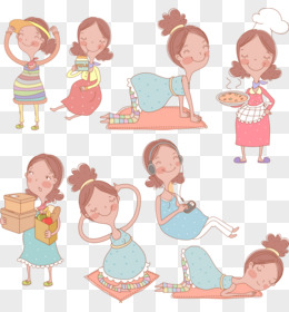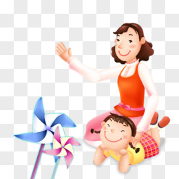 手绘卡通妈妈带着孩子一起买年货免抠元素