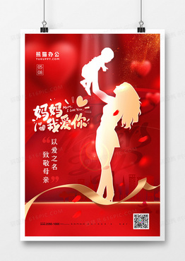 母亲节妈妈孩子宝宝拥抱手绘卡通母爱文艺卡片水墨水彩礼物祝福