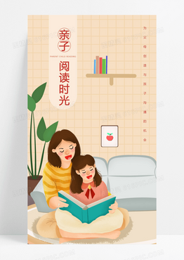大气妈妈与孩子亲子阅读时光手机海报幼儿园亲子手机海报