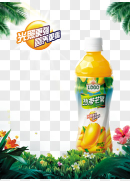 一组卡通手绘新鲜夏日饮品之芒果汁元素