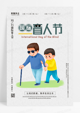 手绘卡通志愿者帮助盲人过马路免抠素材