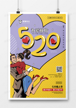 波普漫画风520情人节海报