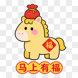 扁平风马上有福小马免抠元素