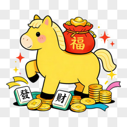 卡通冰箱贴小马恭喜发财免抠元素