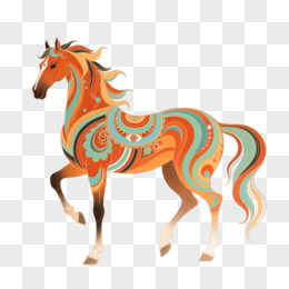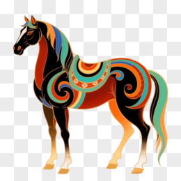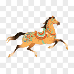 敦煌风格插画一匹马免抠元素