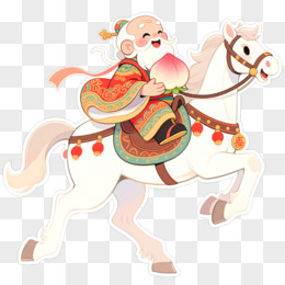 国潮插画一对小马拿着装满金元宝的福袋免抠元素
