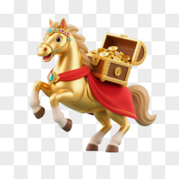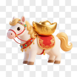 Q版可爱3D马年卡通马形象免扣元素之锦鲤上抱着金元宝马
