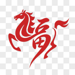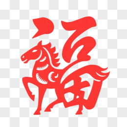 卡通一匹红色奔跑的马身上有着福字花纹免抠元素