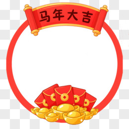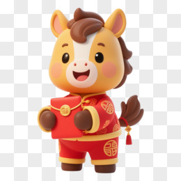 卡通一个坐在铜钱上的拿着红包的小马免抠元素