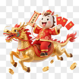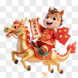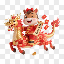 3D创意骑着金龙的小马马年形象IP免抠元素