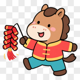 卡通手绘中国马年IP形象抱着发字的马免抠元素