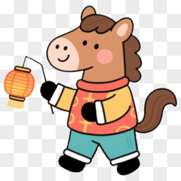 卡通手绘中国马年IP形象拿着福字的马免抠元素